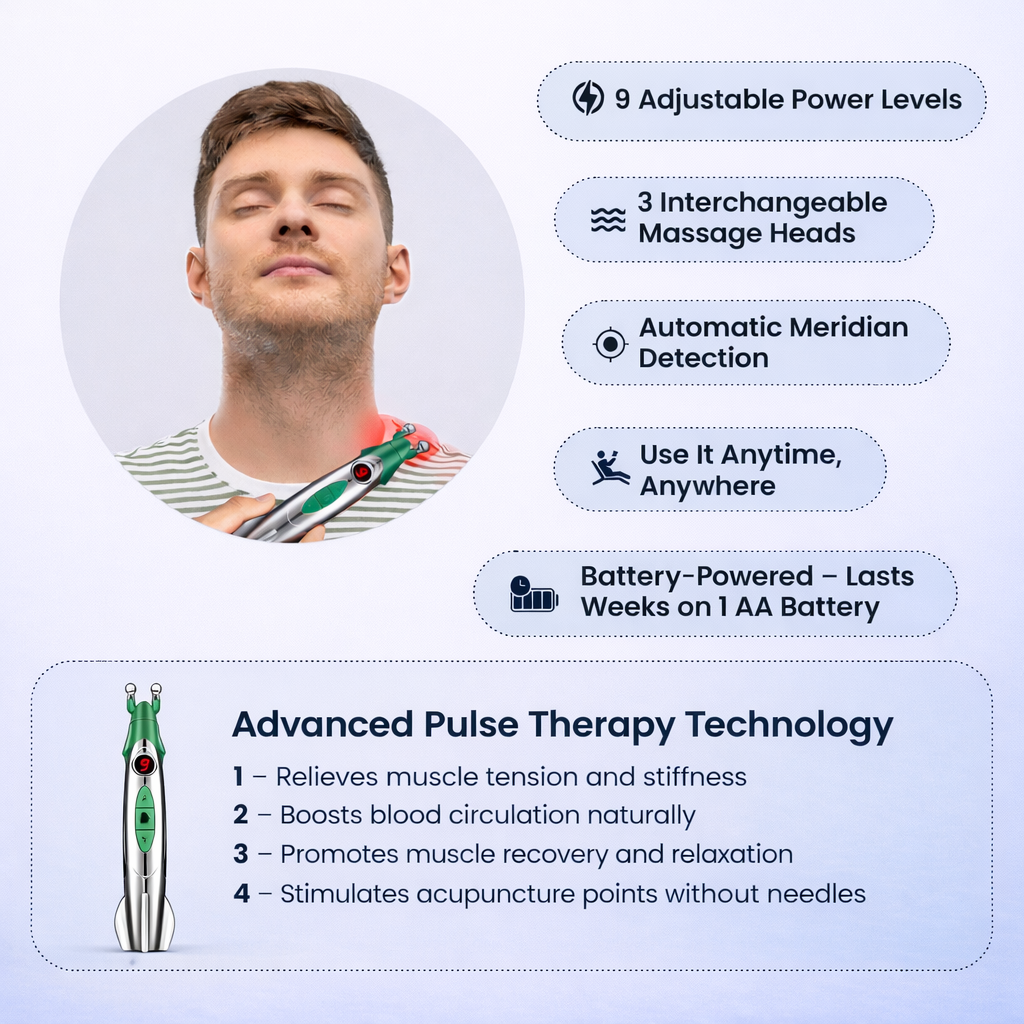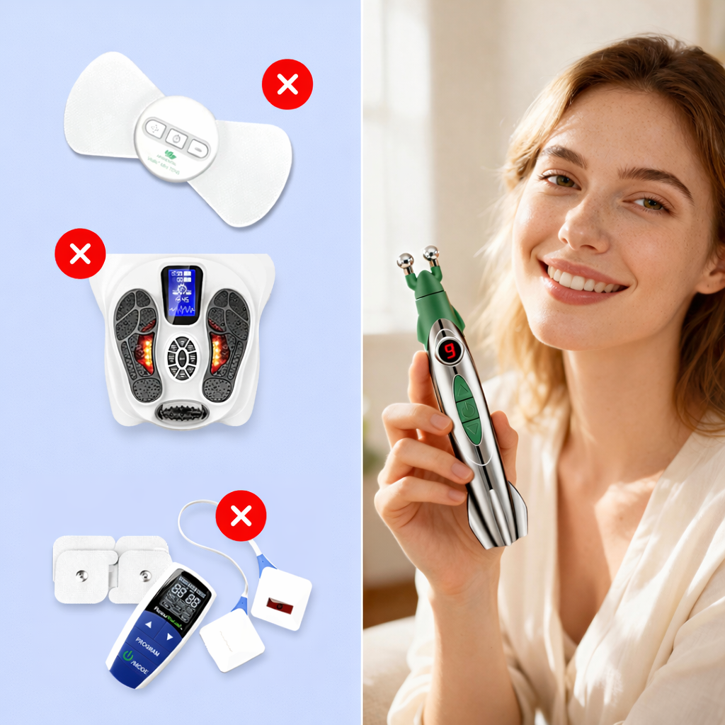 AcuPen™ delivers precision electrical pulses deep into muscles—where chronic pain and tension actually start. Unlike surface treatments, this targeted stimulation penetrates layers massage and heat can't reach.